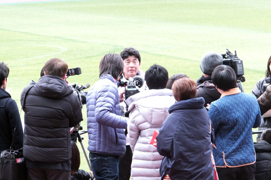 練習後には記者団に囲まれてにこやかに話されている様子でした。