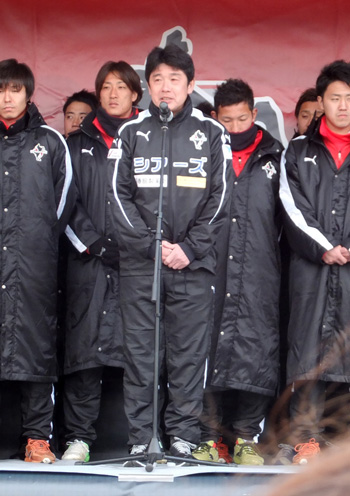 まずは社長のご挨拶。日本一地域密着のチームにという今年の目標を力強く天草でも宣言♪