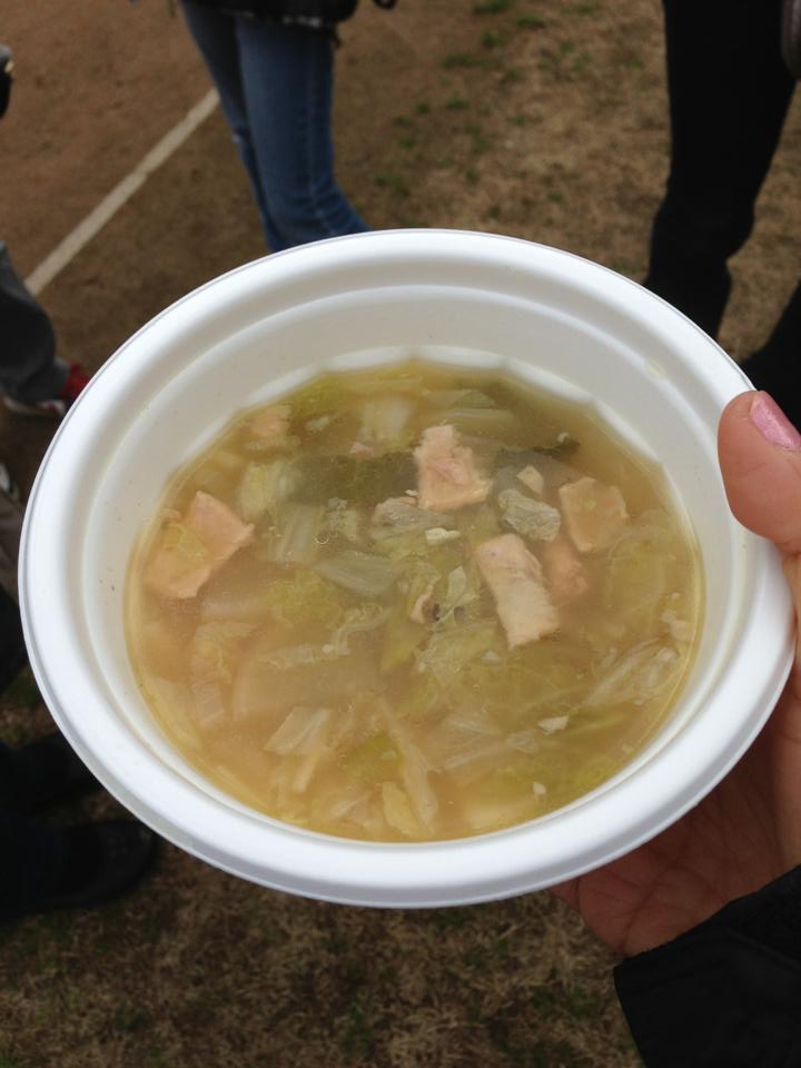 こちらが天草大王鍋。野菜たっぷりのなかに天草大王のつみれ入り。熱々で本当に美味しかったです。ふるまって下さったスタッフのみなさま御馳走様でしたm(_ _)m