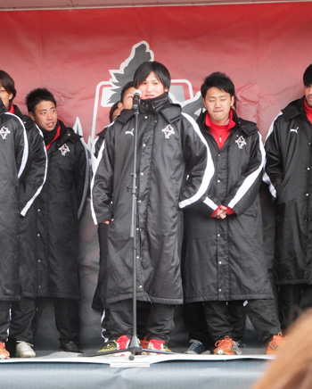 「こんにちは天草四郎です」……やっぱりね(笑) 背番号30のハヤトくん。今年もファン感はキャプテンだな。