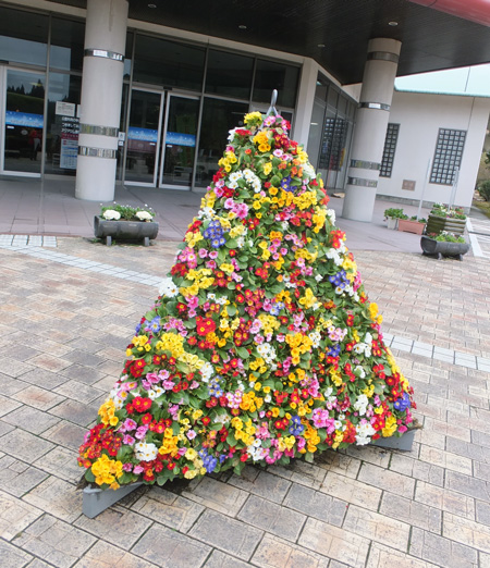 鹿児島の運動公園の建物正面にはこんなきれいな花のモニュメント。ちゃんと土に植えてあります。