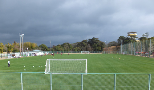 到着。上天草に持って帰りたいようなきれいなグリーンのピッチです。(まだ根に持っている様子)