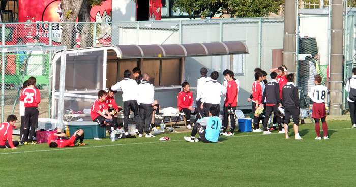 昨年まではこんなシーンでピッチに響き渡るのはコーチ陣の声でしたが、今年は間断なく監督の声が飛びます。しかも間合いが絶妙です(^^)