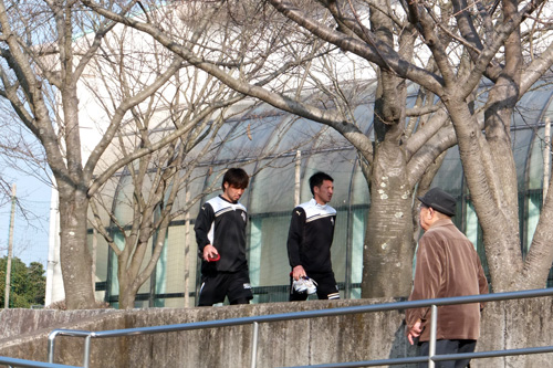 駐車場に歩いていたら、三々五々選手もバスの方へ戻って来ました。明日もがんばってね!