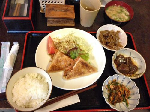 帰熊して有志にてKMでゴハン食べました。これ揚げにキムチ納豆詰めて焼いてあります。ヘルシーで美味でした。お肉だめな人でも満腹になります♪♪