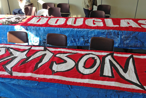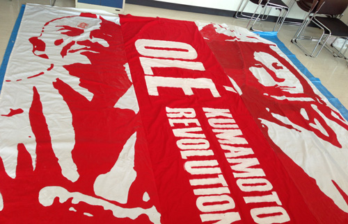 市内某所での選手幕応援幕の作成に参加してきました。