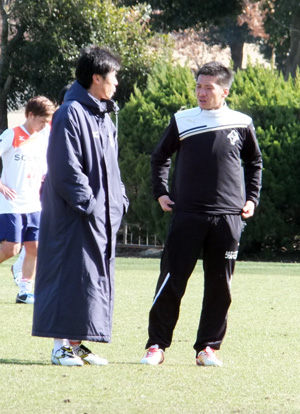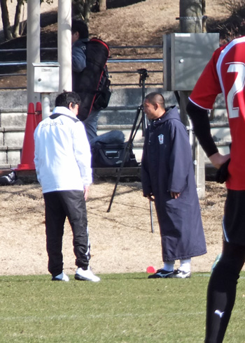 ユース世代で教えてもらったそうなえなりくんはヨシダ監督にご挨拶。