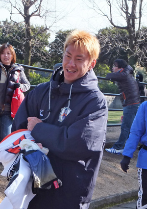 こちらは懐かしのユタカくん。奥様と二人のお嬢さんとともにクラブハウスへ歩いていきました。ロアッソサポから声をかけられてニッコリ。