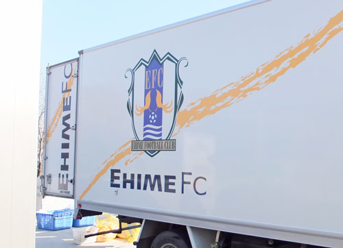 愛媛のトラックは選手バスと違っていたってシンプルなデザインでした。