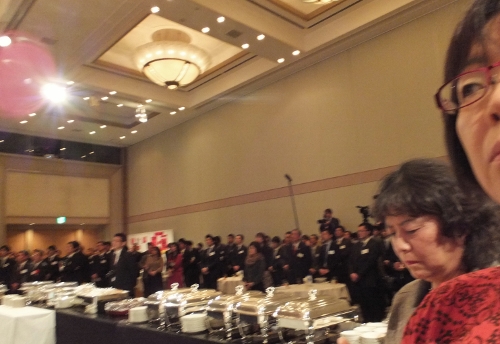写真撮影からのご歓談タイム。今回同じテーブルについておしゃべりしてたKリンちゃんと会場を泳ぎ回りあちこちで選手に声をかけさせていただいてるうちに「あれ?新人くんたちがおらん??」と気づいたところ。