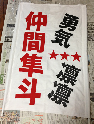 本日。開幕戦前最後の練習見学にて。ご本人からゲーフラに魂を入れてもらいました。