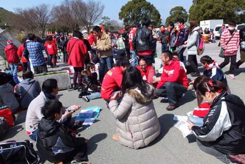 そしてこの場で始まったのが選手コールの歌詞カードを作る作業。印刷したもの1000枚を2枚に切るべくみんなで手作業。これまたそこらの人といっしょくたになって楽しかったよね。