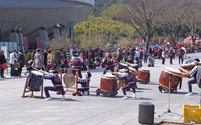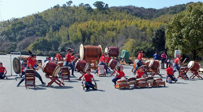 そこへ熊本県各地の太鼓グループの皆さんによる演奏が始まりました。これがなかなかの迫力!すごくカッコ良かったです。
