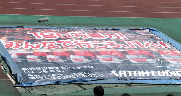 本日SS席以外どこでもフリーで入り込めたので、久々にメインスタンドに行ってみました。陸上競技の場所にはこんなシートが。スポンサー様は本当にありがたいです。