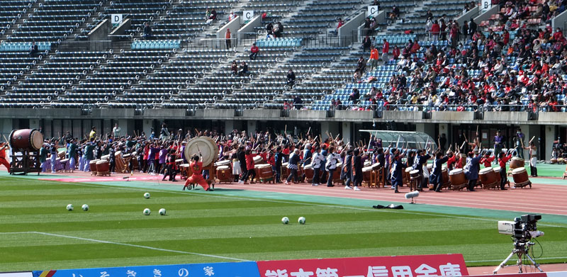 熊本の太鼓演奏グループ総勢200人からの合同演奏というド迫力のイベントは、うまスタ中に響き渡る太鼓の重低音がズンズンくる凄さでした。
