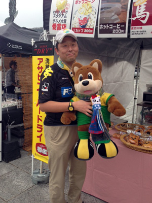 ここ数年おなじみになってきたHTの熊本ゆるキャラタイム。レギュラーのころう君と一緒に毎度の小芝居。マンネリだけど見ないと物足りないという水戸黄門的パフォーマンスです。