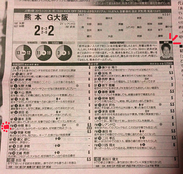 そこには案の定「ガンバ大阪の相手」としてのロアッソ熊本が「ガンバのおかげで」二面見開きでこんな感じ。