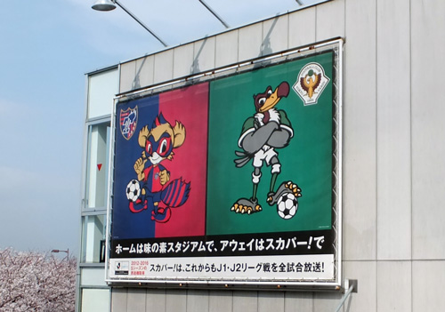 カテゴリ違うからこういう広告もありなのかなとも思いましたが、飛田給駅から味スタまでだとどう見てもFC東京の一人勝ちな印象です。J2サポなのでヴェルディにもがんばってほしいんだけどね(^_^;)