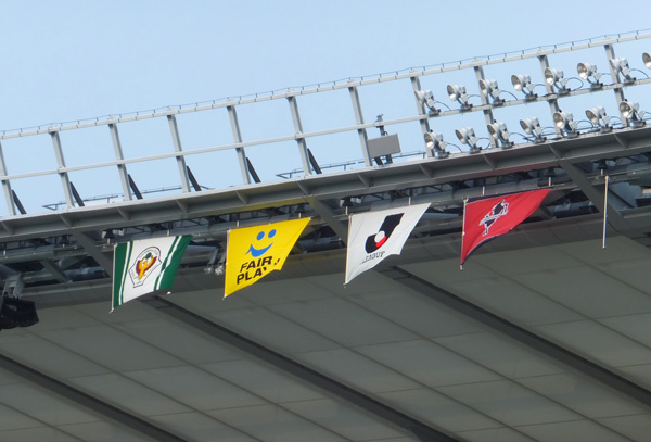 代表戦みたいなチームフラッグ掲揚風景。風はあまりなかったかな。