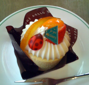 爽やかな酸味とふわふわの舌触りが何ともハッピーなお味です。甘すぎないのがナイスでした。スイーツにぽちっとテントウ虫って最近流行なのかな。