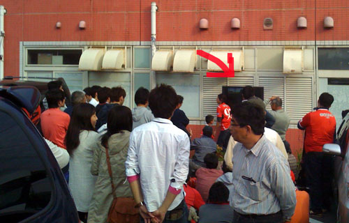 今日もご一緒させていただいた同志K伊さんと共に、1時間前にスタジアム着にもかかわらずあっと言う間に椅子席が埋まってしまい、初のお立ち台最上段に鎮座いたしましたー。なんですかお立ち台って!マハラジャ以来だわぁん♪(大嘘)