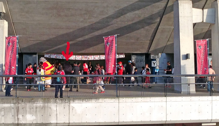 すでに入場開始されておりコンコースではいつもの黒ナマコ(矢印)と相棒がウロチョロしておりました。こっちから見るの初めてかも♪