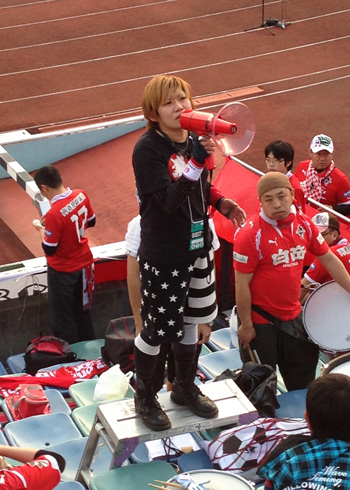 ゴール裏に戻るとHIKARIの作者であるタケルさんがいらっしゃいました。サポーターへ、HIKARIの作者としての気持ちを伝えてくれました。カッコイイです。すてきな方です。一緒に戦いましょう。