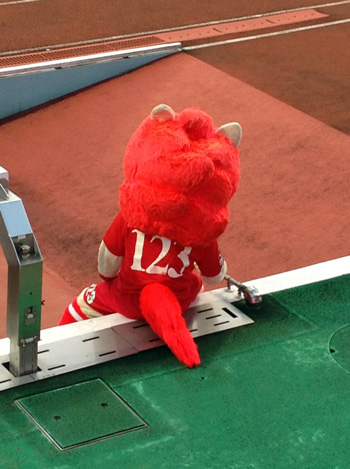 ゴール裏にやってきたキタジくんは目が真っ赤。ショックでしばらく立てなかったそうです。
