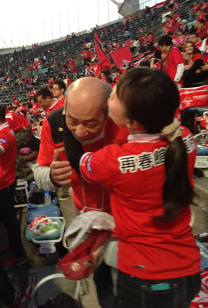 HTにはしっかり愛媛サポさんと戯れてました。ウチのスタジアムはやっぱりそうでなきゃ。