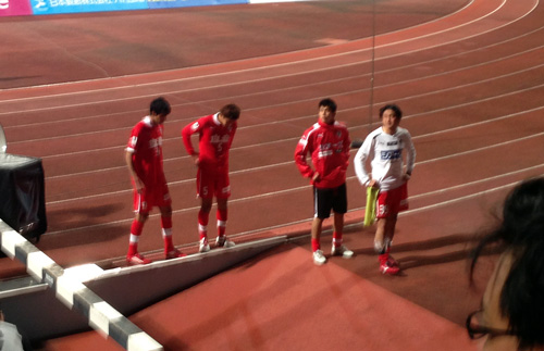 こちらが歌う間目を閉じて聞いている選手、サポーターを見上げている選手、すでに身体が動いている選手。全部覚えています。