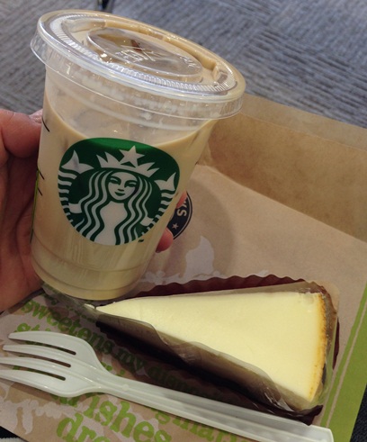 朝ご飯はスタバのチーズケーキとソイラテ。美味でした♪
