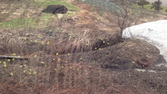 札幌駅へ向かう駅の車窓からは熊本ではまずお目にかかれない「残雪とふきのとうの大群」(^^)。ふきのとうが大勢でキャイキャイおしゃべりしてるみたいで可愛いいんだコレ♪