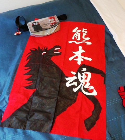 ホテル着。試合で掲げるか客席に拡げるかと思って持参したんですが、まさか翌日があんな天候とはえー。