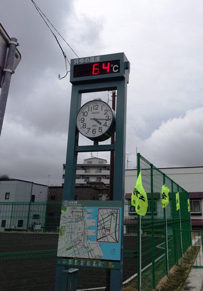 この時間の小樽の外気温。風強くて雨もパラパラ。でも試合の時間はこんなに寒くはないだろうとまだ余裕だった自分がいました。