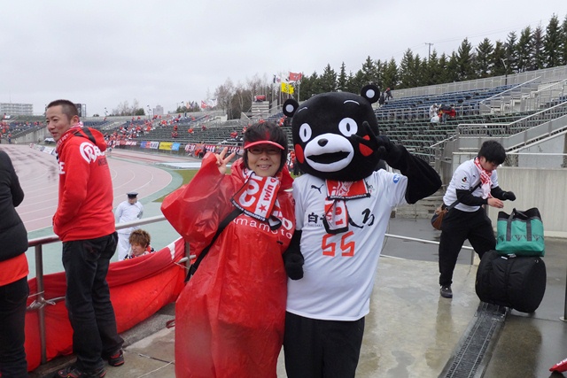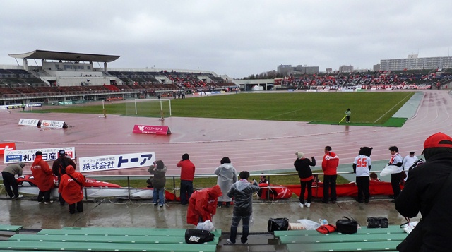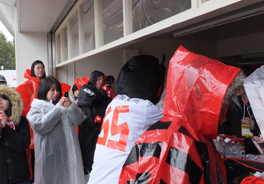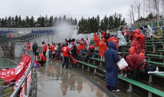 皆さん決して北海道の天候を侮ってたわけじゃないけれど、さすがに試合当日これほど寒くて風が強くて雨がひどいとは想像していなかったので、女子サポの悲鳴がとまりません。いや男性だって同じです。