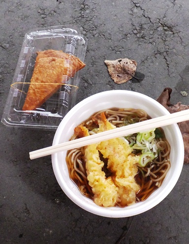とにかく暖かいモノをと天ぷらそば。(うどんは売り切れ。やはり寒いときはうどんてのは南北関係ない?)