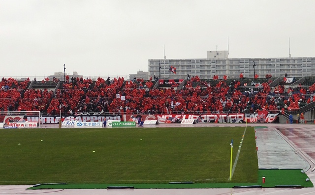 ここに写ってる赤い皆さんはほとんど全員ホームサポさんです。どーでしょこの「日本列島の最南端から最北端アウェーへ来た」感のなさ!(笑)