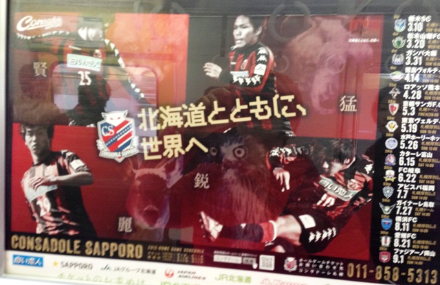 どこかの駅に掲出されていたコンサドーレのポスター。駅貼りを意識するとこんなに躍動的なデザインもありなのねとうらやましくもあり(^^)