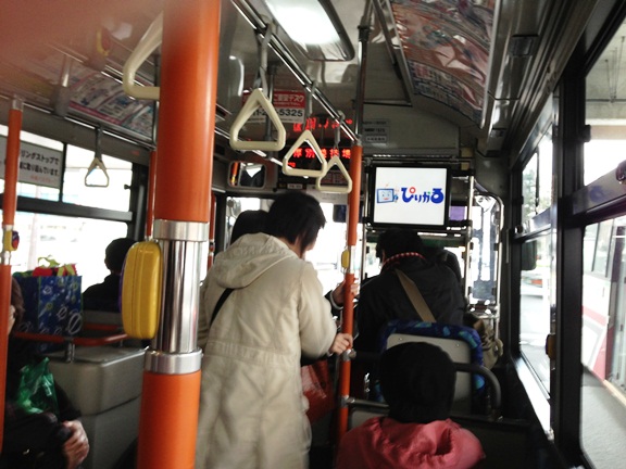 大谷地駅のバスターミナルからシャトルバスに乗車。ここで新千歳空港から直接乗り込んできたコールリーダーとバッタリ♪ アウェーでは時々あるんだけどこの「サポ仲間とバッタリ」ってすごく嬉しいし心強いもんです。