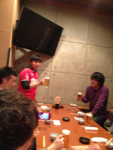 1次会終わってすすきの交番そばの交差点でロアッソコールする面々。おまわりさん飛んできやしないかとヒヤヒヤしたのはナイショです♪