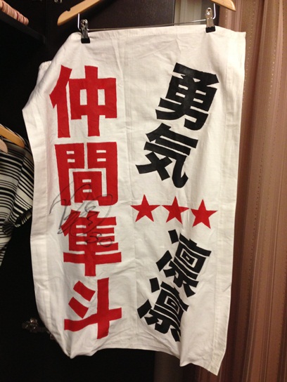 厚別で最後の最後に掲げてぐしょ濡れになったゲーフラは、祝勝会のあいだにしっかり乾いてくれました。