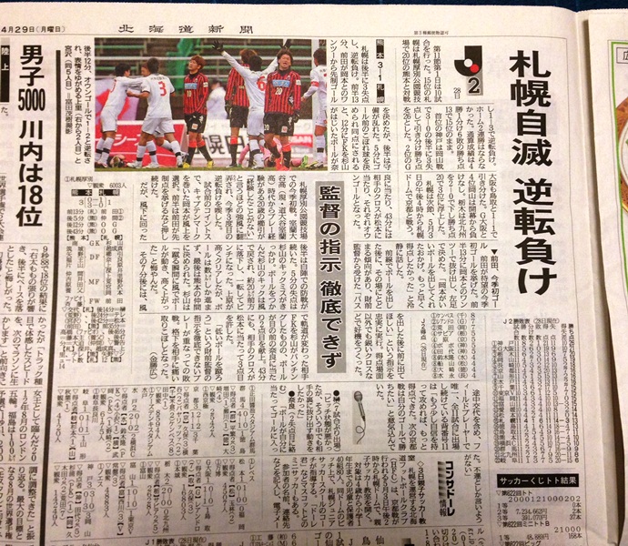 何シーズンか前にアウェー栃木戦勝利の翌日に地元の友人にもらったローカル紙に味を占めて、勝利のときだけ買うことにしてます。