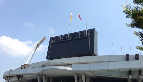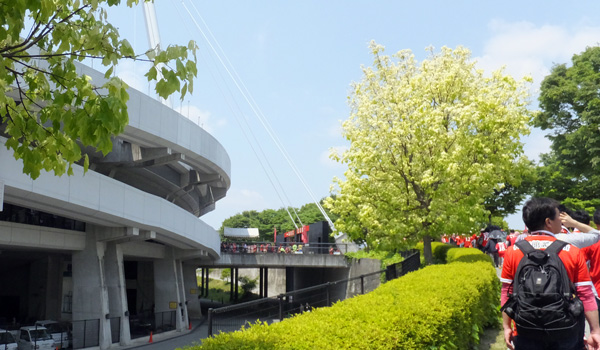 この日は身内が担架係やるというのでいつもと違う場所に駐車。試合日にこちらから見るのは珍しいうまスタです。