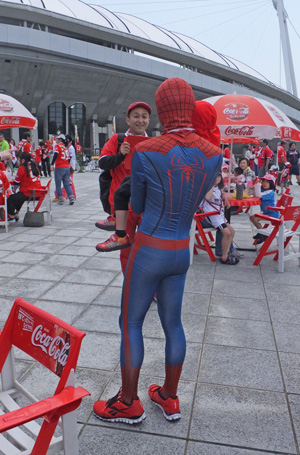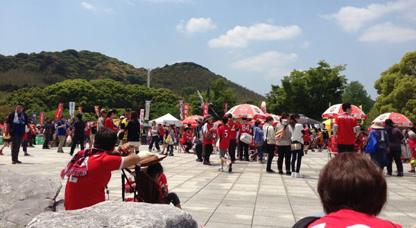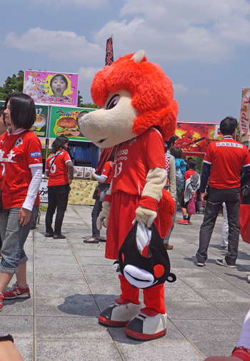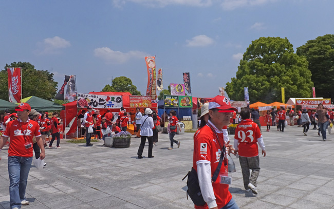 今日は天気がいいせいか、スタグルメ広場にはサポーター以外にもメディアの人たちが続々やってきてあちこちで赤馬サポが捕まってました。ご飯食べてたらまずN○Kに捕まってみんなで「がんばれロアッソ!」やらされまして。
