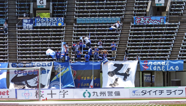 蹴るのがホリゴメくんと知るやゴール裏俄然勢い付きます。