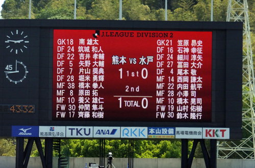 水戸もパスワークお見事だけど、赤馬衆のボール捌きに迷いがないのも見ていて気持ちよかった。球離れという点ではロアッソもこなれてきたように見えました。