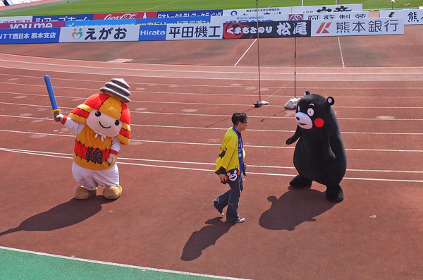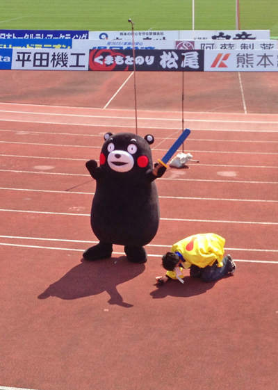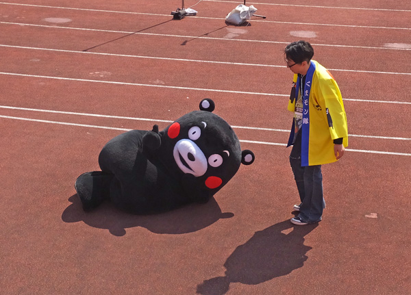 くまモンとお兄さんの小芝居がグレードアップ。ふいにダッシュするランダムな動きに着いていったりころうくんの刀で突っつかれたり営業部長のお付きも大変ですねえ