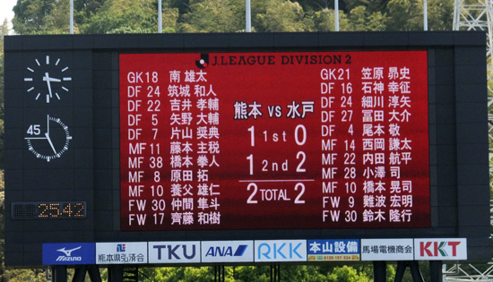 その後勢い付いた水戸の前線に上手く前に入られてリードを拡げられます。これまた鈴木くんが効いていて上手いことやられてしまいました。