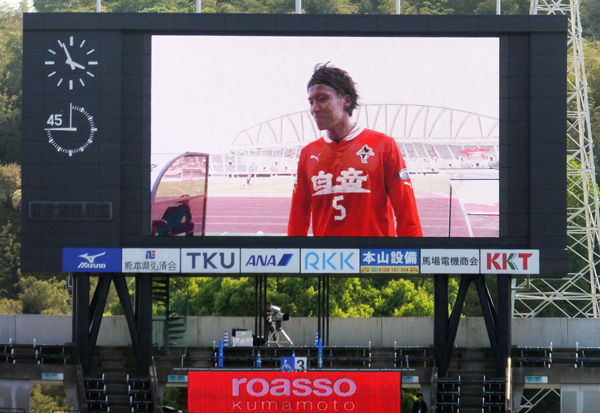 今日は選手も「Come on ROASSO!」タオマフ持ってます。これは嬉しい演出ですね。