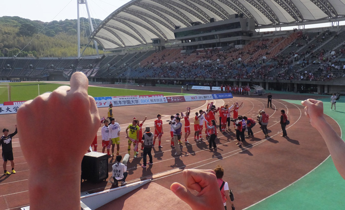 客席からはホームで初めての勝利の雄叫び。